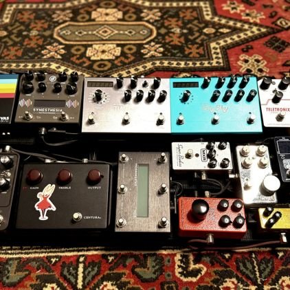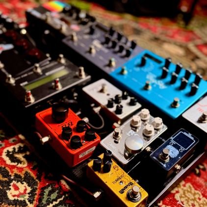 El sonido de Abraham Artavia se construye a partir de un setup cuidadosamente seleccionado, donde cada pedal cumple un rol específico dentro de su identidad sonora. En esta configuración destacan marcas que aportan carácter, dinámica y versatilidad tanto en estudio como en vivo.